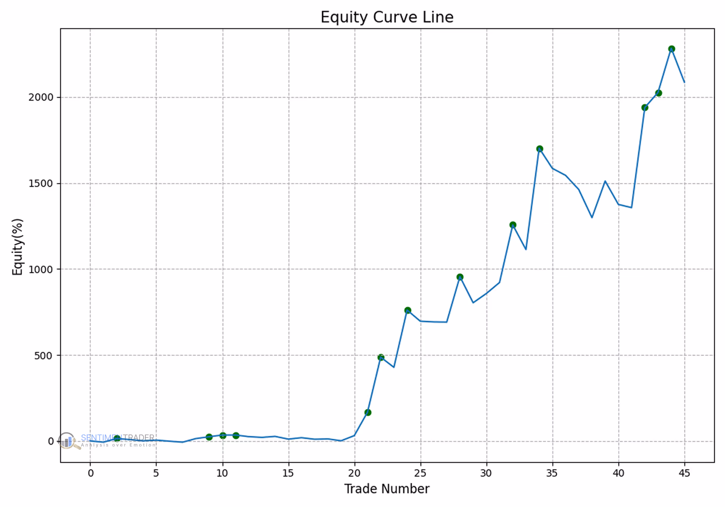 This backtest was run using SentimenTrader's Proprietary Backtest Engine, which lets you test your strategy with nearly 100 technical indicators and over 17,000 indicators covering Sentiment, Trend Score, Breadth, Macro, and Seasonality. No coding required.